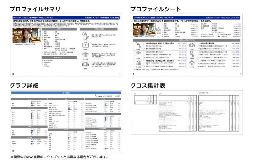 提供されるデータは「プロファイルサマリ」「プロファイルシート」「グラフ詳細」「クロス集計表」の4種。