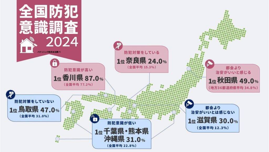 ■防犯について「しっかり対策をしている」県1位は「奈良県」、次いで「東京都」、「京都府」で、三大都市圏は防犯の意識が高い傾向に。