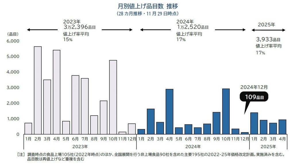 帝国データバンク『定期調査:「食品主要195社」価格改定動向調査―2024年12月/2025年』