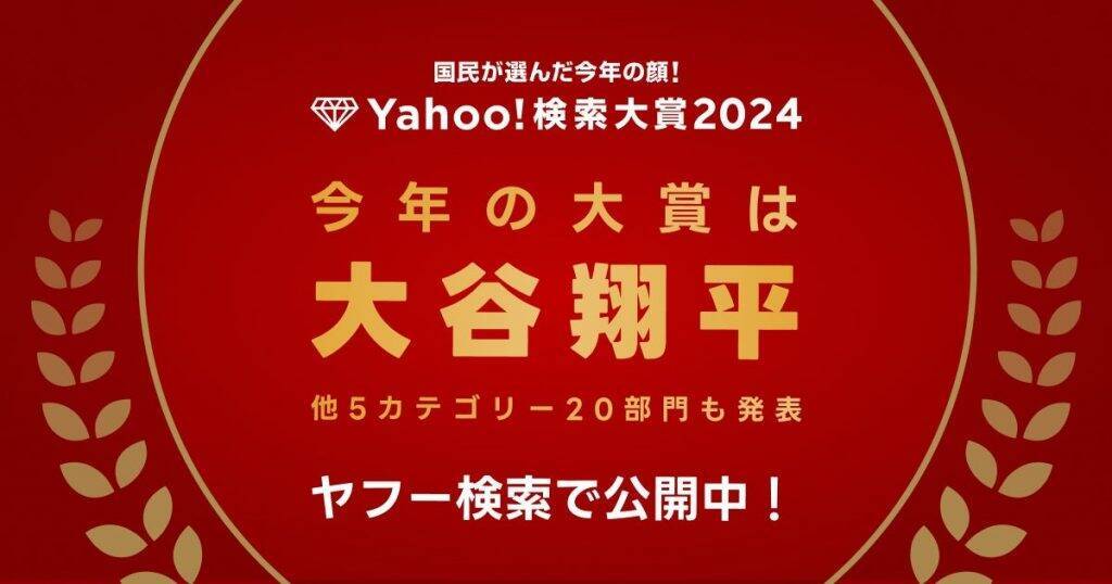 LINEヤフー『【LINEヤフー】2024年に最も検索数が急上昇した“今年の顔”、「Yahoo!検索大賞2024」を発表 “大谷翔平”さんが「大賞」と「アスリート部門」1位を2年連続で受賞!』