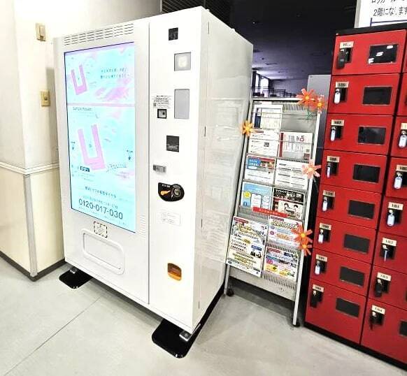 同自販機は、利用者が公式LINEを友だち登録し、簡単なアンケートに回答してQRコードをかざすだけで化粧品や飲料のサンプルを無料で受け取ることが可能。