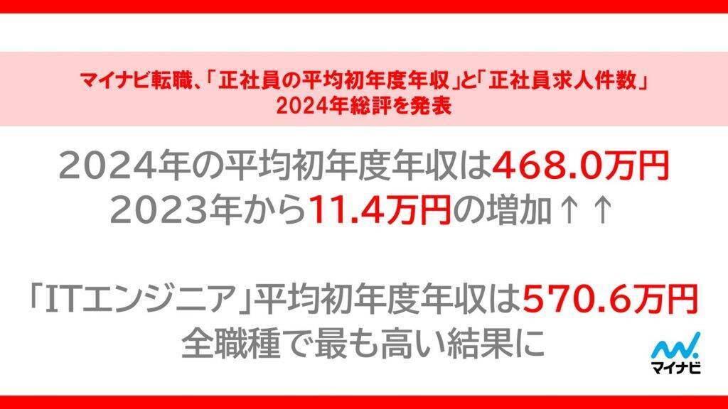 マイナビ転職『「正社員の平均初年度年収」と「正社員求人件数」の2024年総評』