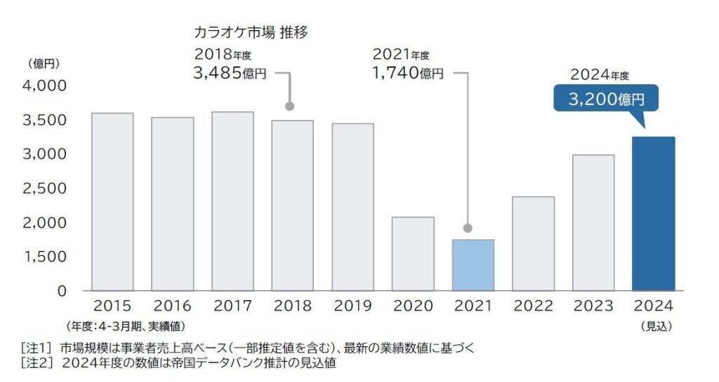 コロナ禍で大きなピンチに陥ったカラオケ業界がV字回復を遂げているという。全国の主なカラオケボックス運営企業を中心としたカラオケ市場(事業者売上高ベース)は、2024年度に3200億円規模まで拡大する見込みとなった。