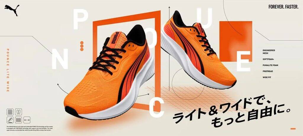 「POUNCE LITE WIDE」を新発売同商品は、PUMAの独自開発であるプーマライトフォームをミッドソールに採用。