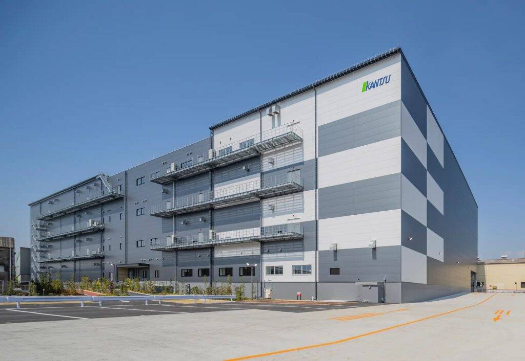 「関通MEGA物流センター」外観同センターは、高速道路網が整備された優れた物流立地に位置し、交通渋滞を避けながら主要都市への短時間アクセスが可能。大阪市内・神戸市内への配送時にも都市部への侵入が容易で、効率的なルート設定により配送時間の短縮やコスト削減に大きく貢献するという。