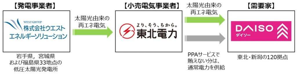 同社にとって、オフサイトPPAの導入は今回が初の取り組みとなる。供給される電力は、ウエストホールディングスの子会社であるウエストエネルギーソリューションが開発した低圧太陽光発電所(岩手・宮城・福島の33地点、合計定格出力1,584kW)で発電された再生可能エネルギー由来のものとされる。年間供給量は約276万kWhで、一般家庭約900世帯分に相当するという。