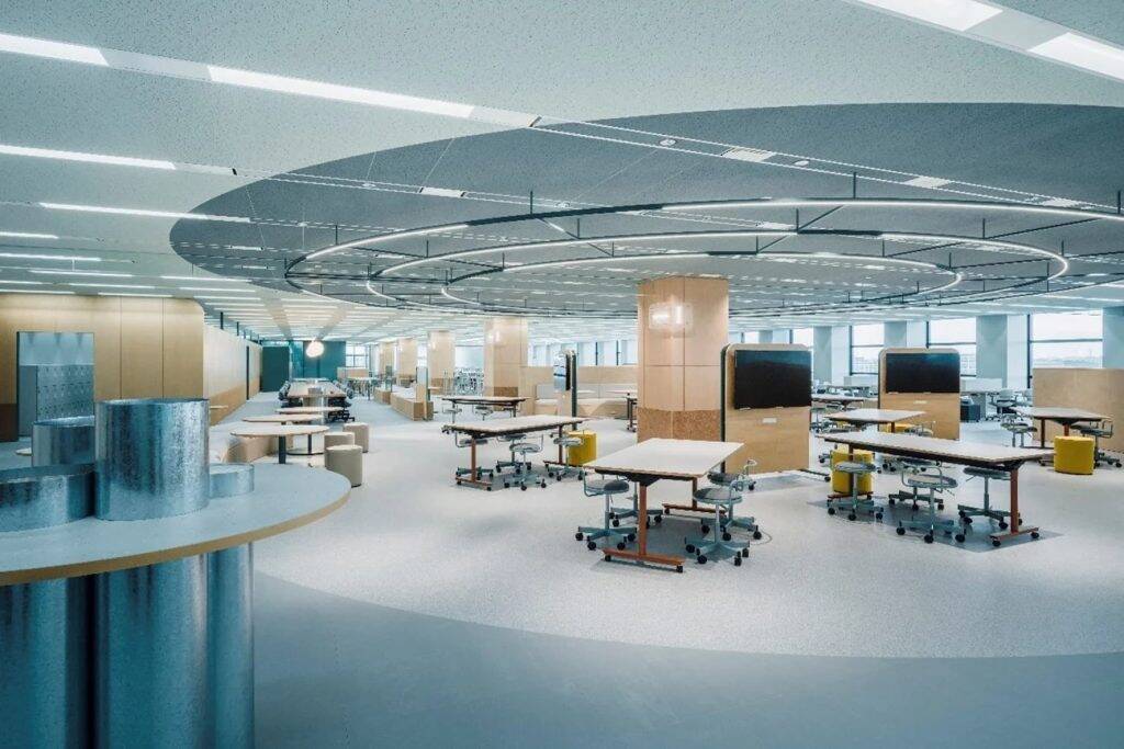イトーキ、東洋エンジニアリングの本社をデザイン同プロジェクトは、幕張に位置する築30年以上のヴィンテージビルを活用し、延床面積約15,000平方メートル、約1,600人が利用する大規模オフィス空間のデザインを実施したもの。