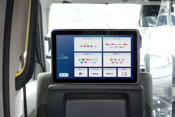 後部座席タブレットの次世代端末を導入新端末は、従来前面にあった決済機の物理ボタンを廃止し、全面ディスプレイ化を実現。画面サイズが10インチから13インチに拡大したことで、決済画面の視認性と操作性が大幅に向上したとしている。
