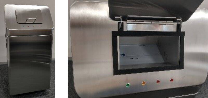 店舗に設置する回収ボックス今回の実証事業では、守谷市と神戸市の各ローソン店舗に回収用ボックスを設置し、店舗で回収した製品を自治体が回収してリサイクル工場へ搬入するという。守谷市では、KDDIが携帯電話やスマートフォンのリサイクルを担当する。回収拠点は、リチウムイオン電池等の回収場所を地図上で確認できるウェブサイト「資源ぐるりマップ」にも掲載されるとのことだ。