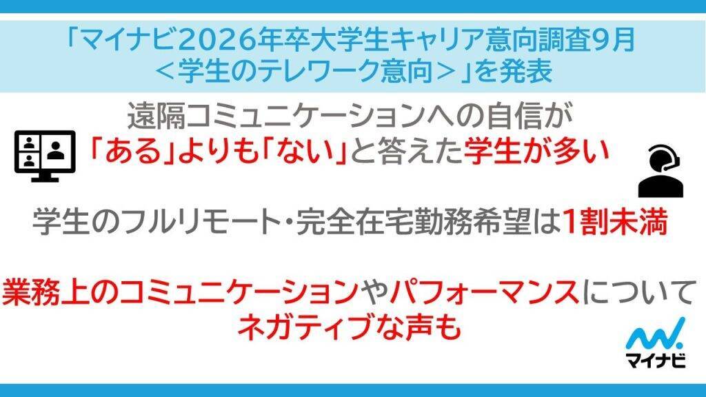 マイナビ『マイナビ 2026年卒 大学生キャリア意向調査9月<学生のテレワーク意向>』