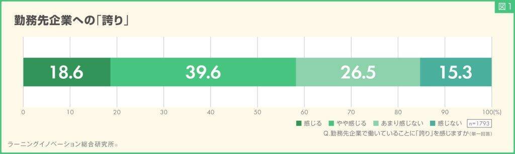 1.58.2%の若手社員が、勤務先企業に「誇り」を実感。社会人歴が長くなるにつれて減少傾向