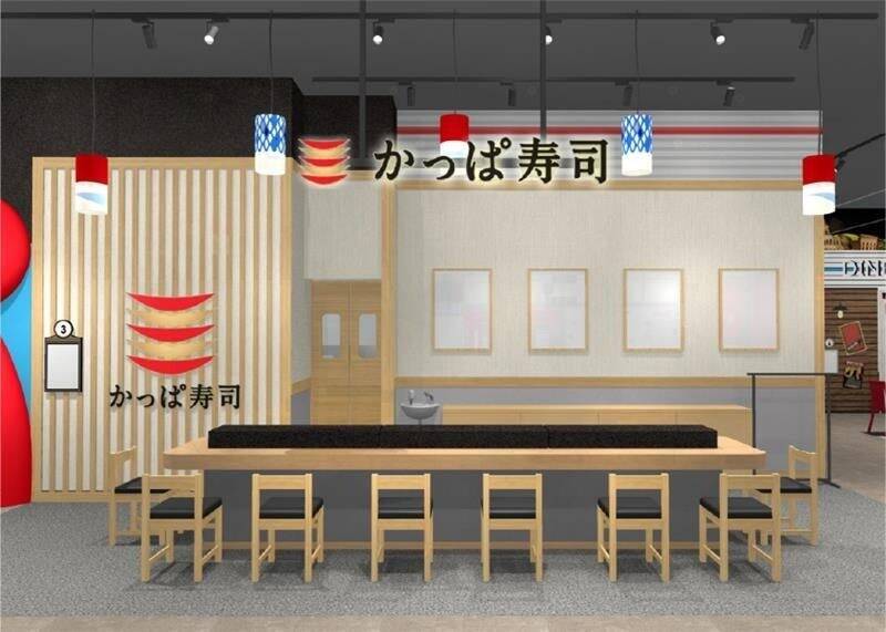 内装はまるで本物のかっぱ寿司店舗のようなデザインで、写真映えするスポットも多数。親子三世代が一緒に楽しめる食育&エンタメ体験となっている。