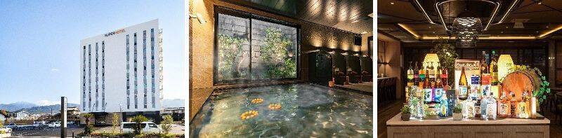 また同ホテル内には、天然温泉「恵那峡(えなきょう)の湯」を完備しているほか、夜間のラウンジでは、自由にアルコール飲料を含むドリンクを作って楽しめる「ウェルカムバー」を提供するという。