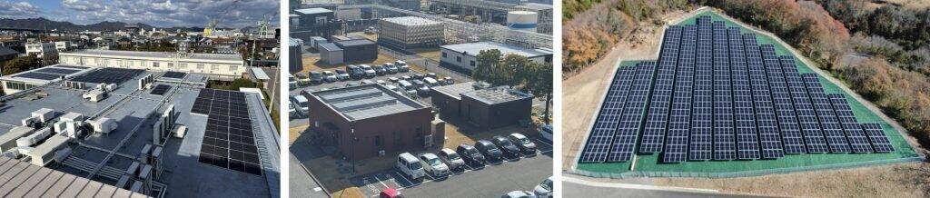 各工場に新設・増設した太陽光発電設備(左から徳島工場、徳島第二工場、徳島美馬工場)各設備は2024年9月から2025年12月までの期間にそれぞれ稼働を開始し、これにより太陽光発電設備によるCO2排出削減量は、国内6工場合計で年間約3,189トンの見込みとしている。
