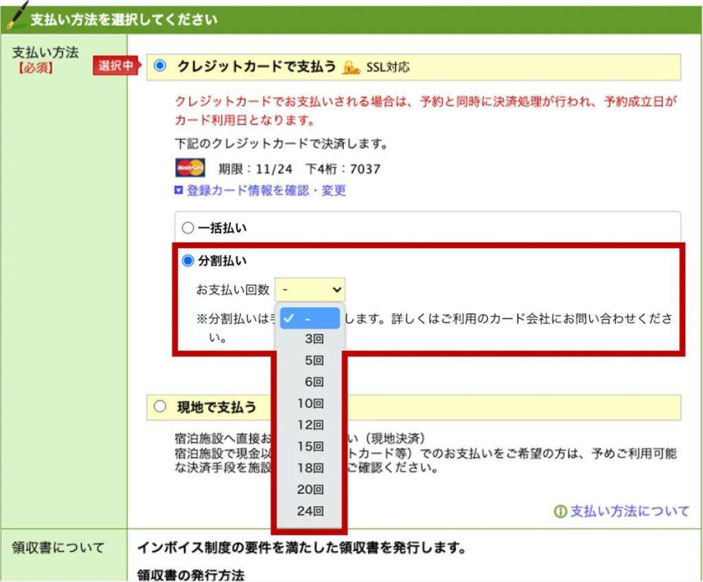 楽天カード、楽天トラベル予約の支払方法に分割払いを追加これまで「楽天トラベル」におけるクレジットカード決済は一括払いのみだったが、分割払いの導入により、「楽天カード」を利用した予約で3回払いから最大24回払いまでの分割払いが選択可能になった。