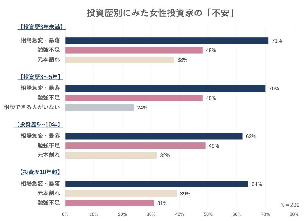 投資歴別にみた女性投資家の「不安」