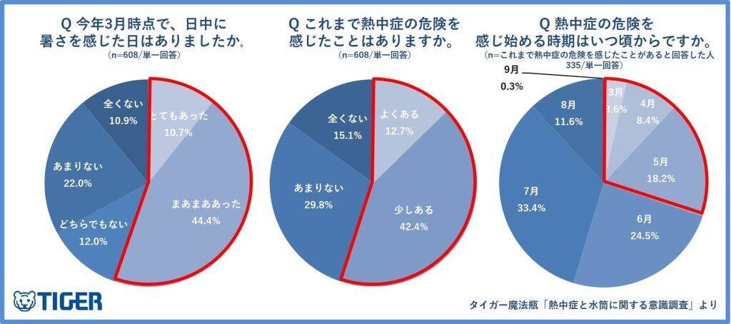 ■今年3月時点で日中に暑さを感じた人は、全体の半数以上(55.1%)。熱中症の危険を感じたことのある人では3割(30.2%)が、春時期(3~5月)から熱中症の危険を感じると回答。