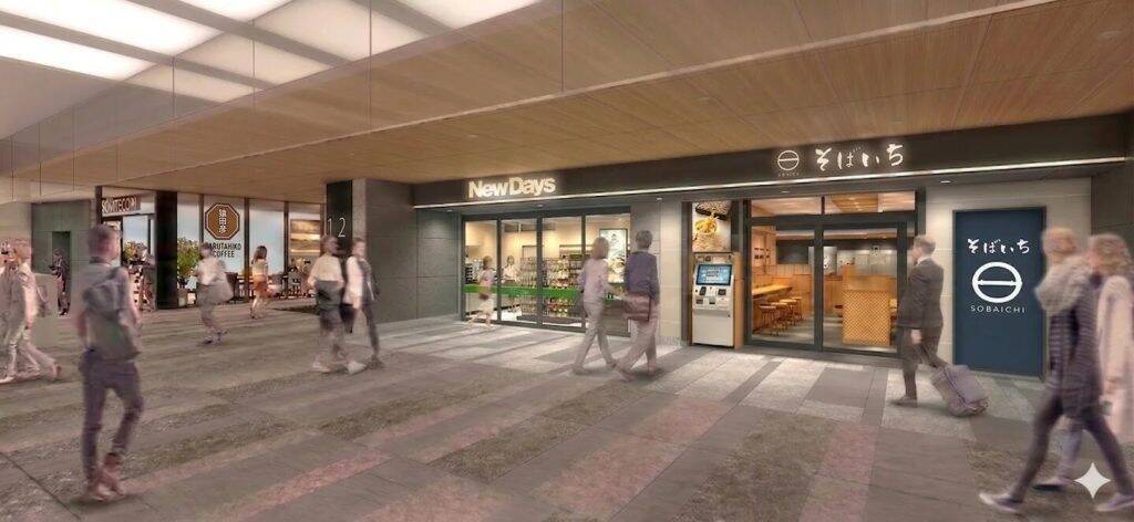 JR渋谷駅新南改札内外に4ショップオープン新たに出店するのは、改札外の「猿田彦珈琲 Tall」「猿田彦珈琲 Short」と、改札内の「そばいち」「NewDays」の4ショップ。