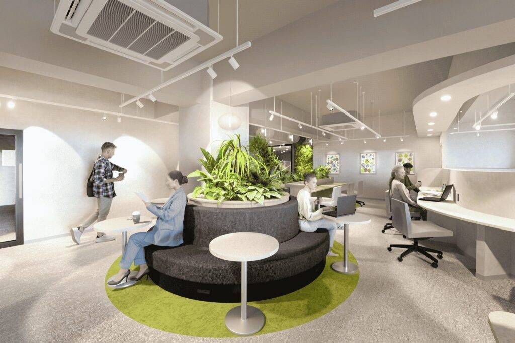 KEISEI×BIZcomfort市川 イメージ同施設は、京成不動産とWOOCのコラボレーションにより生まれた7拠点目のシェアオフィスであり、24時間365日利用可能である。