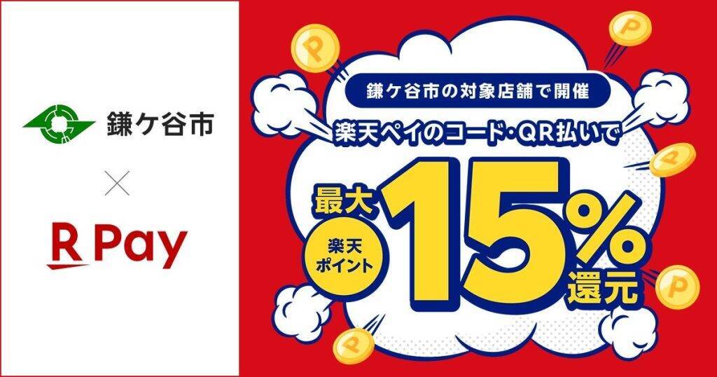 楽天ペイ、千葉県鎌ケ谷市の「キャッシュレス決済キャンペーン」に参加同キャンペーンでは、千葉県鎌ケ谷市の対象店舗において、キャンペーン期間中に「楽天ペイ」のコード決済を利用した人を対象に、決済金額に対して最大15%分の「楽天ポイント」を還元。