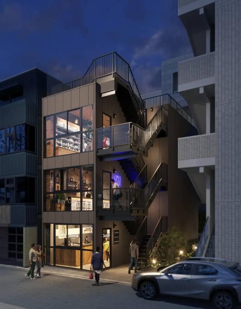 設計面では、建物外周に開放的な廻り階段を配置し、各フロアにおけるデッドスペースを抑えた自由度の高い空間を実現。こだわりのある店舗創りを求める多彩な業種のテナントに対応できる空間となっているとのことだ。