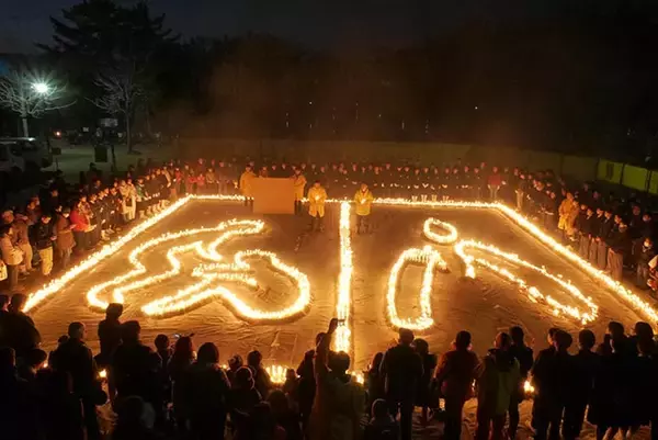 「阪神大震災25年」阪神大震災から17日で25年を迎えるのを前に、昆陽池公園で開かれた「犠牲者追悼のつどい」。市民らがろうそくを囲んだ=2020年1月16日午後、兵庫県伊丹市 写真提供:産経新聞社