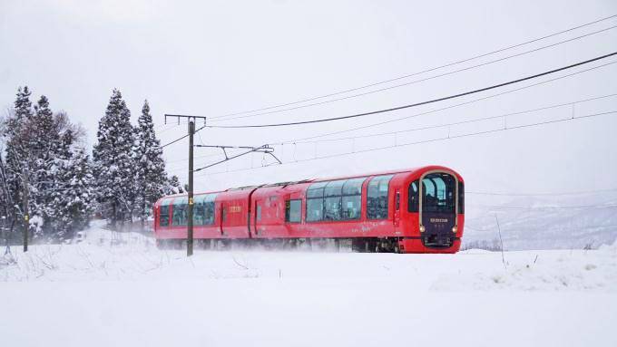 看板列車は、何といっても、週末を中心に運行される「えちごトキめきリゾート雪月花」。