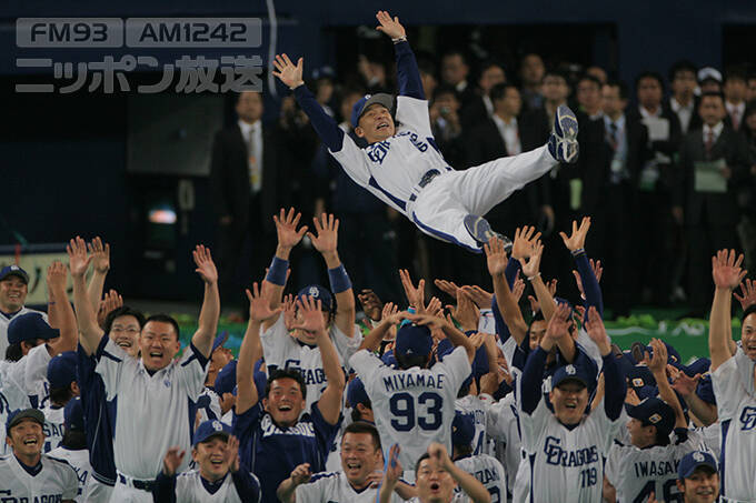 プロ野球 日本シリーズ第5戦 中日vs日本ハム 53年ぶり2度目の優勝を決め、選手たちに胴上げされる中日・落合博満監督=2007年11月1日 ナゴヤドーム 写真提供:産経新聞社