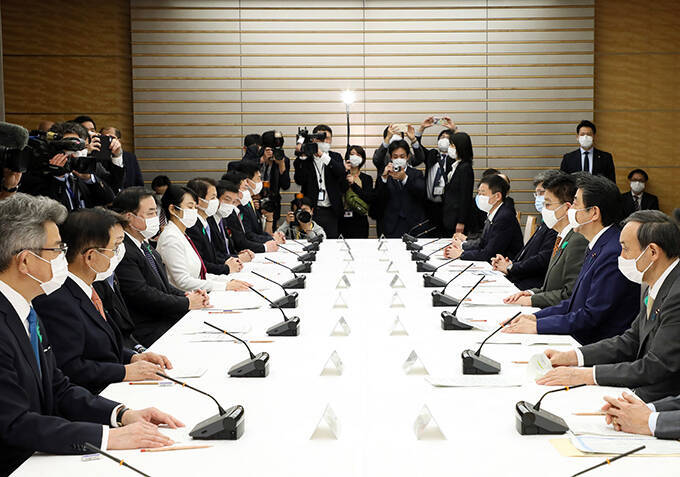 政府与党は新型コロナウイルス対策として、所得制限を設けず全国民に一律10万円を給付する調整を始めた。減収世帯に限った30万円の給付は取り下げて、20日に国会提出の予定だった2020年度補正予算案を組み替える方針である。