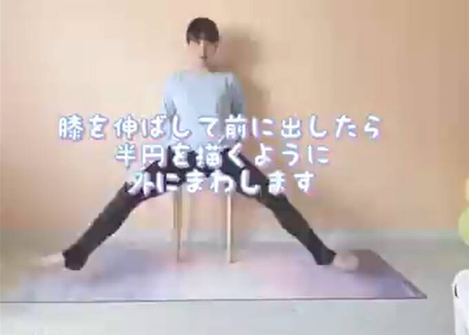 (4)前に出したら半円を描くように外にまわします。反対まわしも同じように」