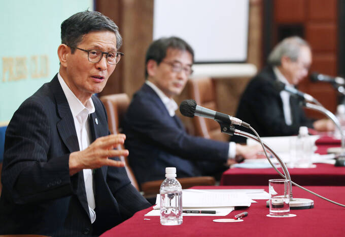 政府専門家会議の在り方について記者会見する尾身茂副座長(手前、地域医療機能推進機構理事長)ら=6月24日、東京都千代田区の日本記者クラブ 写真提供:時事通信社