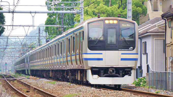 横須賀線から東海道本線を経由して、総武本線に直通しているE217系電車。