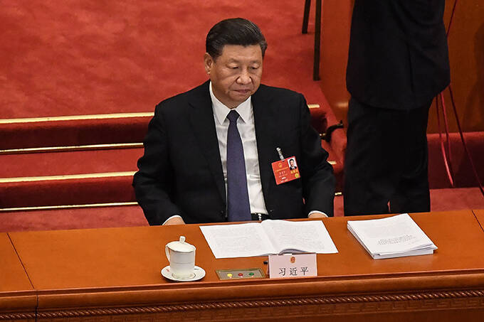人民大会堂で、政府活動報告を聴く中国の習近平国家主席(中国・北京)=2020年5月22日 写真提供:時事通信