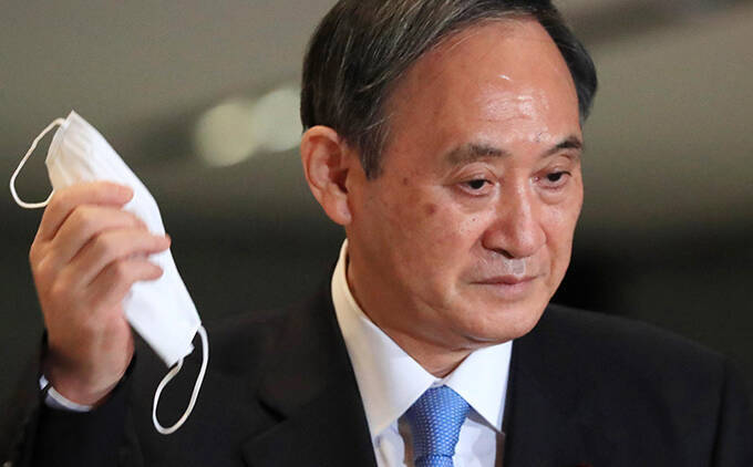 【政治 菅首相ぶら下がり】記者の囲み取材に応じる前、マスクを外す菅義偉首相=2020年11月21日午後、首相官邸 写真提供:産経新聞社