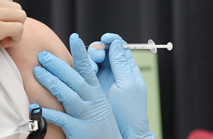 大阪で新型コロナワクチン接種開始 ワクチン接種を受ける医療従事者=2021年2月19日午後1時4分、大阪市中央区の大阪医療センター 写真提供:産経新聞社