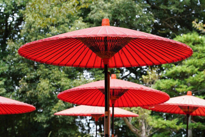 和傘には「番傘」や「蛇の目傘」と呼ばれるものがありますが、どちらも雨傘のことです。番傘は江戸時代に生まれて庶民の間で広く使われてきましたが、名前の由来には諸説あります。“昔、傘に屋号を入れていたから”“番号を振って持ち主が分かるようにしたから”などいわれています。