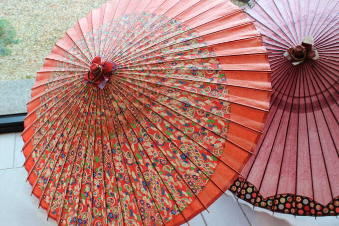 和式の傘「和傘」ですが、「洋傘」との一番の違いは“閉じた時の傘の持ち方”なんです。“傘の持ち手となる部分”のことを、一般的には「柄(え)」と呼んでいますが、正式には「手元」、または「ハンドル」と呼ぶそうです。