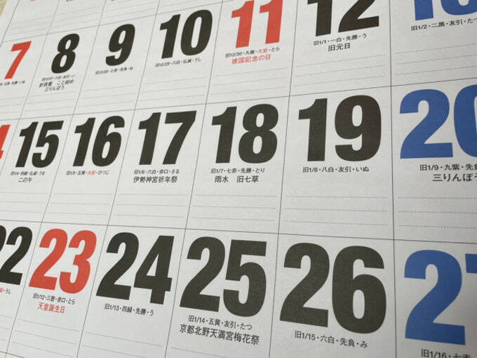 カレンダーの日付の色には、特に決まりはないそうです。それでも月曜日から金曜日は「黒」で、日曜日と祝日は「赤」というのが定番です。ところが日本では、土曜日を「青」にしたカレンダーもあります。