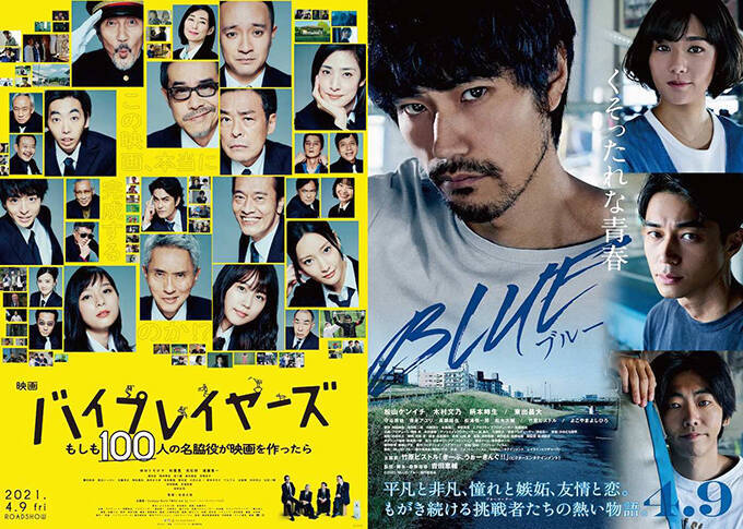 今回は、4月9日公開の映画『バイプレイヤーズ~もしも100人の名脇役が映画を作ったら~』と『BLUE/ブルー』をご紹介します。