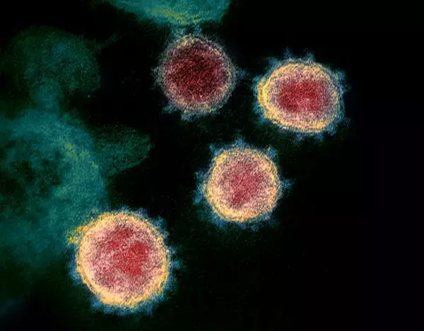 SARS-CoV-2(2019-nCoV、COVID-19を引き起こすウイルス)の透過型電子顕微鏡画像(NIAID https://www.flickr.com/photos/niaid/49534865371/ より) CC BY 2.0