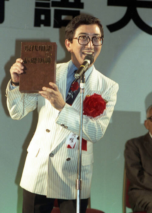 「日本新語・流行語大賞」表彰式 「・・・じゃあ~りませんか」で年間大賞を受賞した、吉本新喜劇の俳優・チャーリー浜 =1991(平成3)年12月2日、東京・丸の内の東京會舘 写真提供:産経新聞社