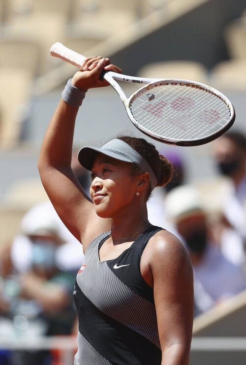 全仏テニス第1日 女子シングルス1回戦で勝利し歓声に応える大坂なおみ=パリ(ゲッティ=共同) 日本時間2021年5月30日 写真提供:共同通信社