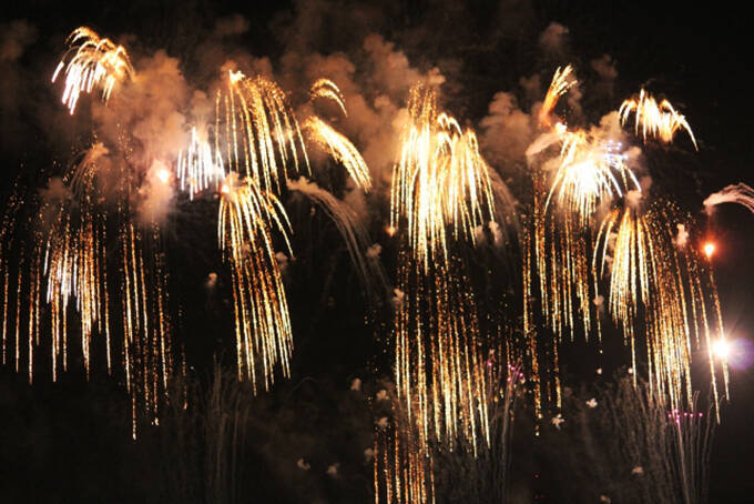 「仕掛け花火」はいくつもの花火を使って、ロゴやイラストなど、さまざまな演出をする花火です。次々と連続して打ち上げられる「スターマイン」も仕掛け花火の一種です。