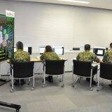 陸上自衛隊と米陸軍が実施したサイバー競技会で、問題に取り組む陸自隊員ら=2019年8月22日、防衛省 写真提供:時事通信社