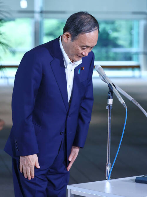 横浜市長選の敗戦から一夜明け、記者団の質問に答える菅義偉首相。「大変残念な結果だった。市民の皆さんが、市政が抱える新型コロナウイルス問題とか、さまざまな課題について判断をされたわけだから、謙虚に受け止めたい」と述べた=2021年8月23日午前、首相官邸 写真提供:産経新聞社