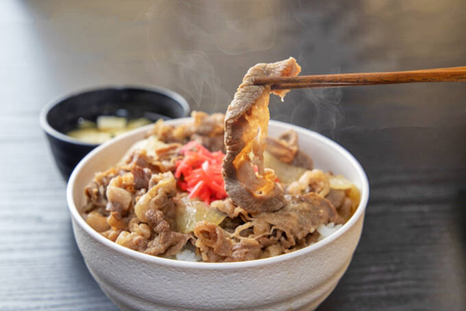 その後、1958年(昭和33年)に「株式会社吉野家」が設立されると、牛丼以外のメニューはすべて排除し、牛丼専門店へと転身します。さらに「牛丼を食べに来るお客さんは、牛肉を食べに来ている」と考え、たっぷりの牛肉とタマネギだけを具材に、シンプルな牛丼の提供を始めました。こうして現在の牛丼文化が日本の食生活に根付いて行きます。