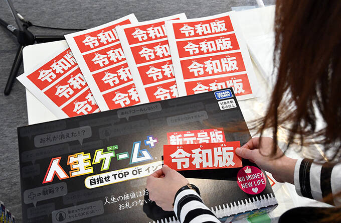 【新元号発表】東京・渋谷のSHIBUYA109の前では、新元号「令和版」の人生ゲームが配布されるイベントが行われた=2019年4月1日、東京都渋谷区 写真提供:産経新聞社