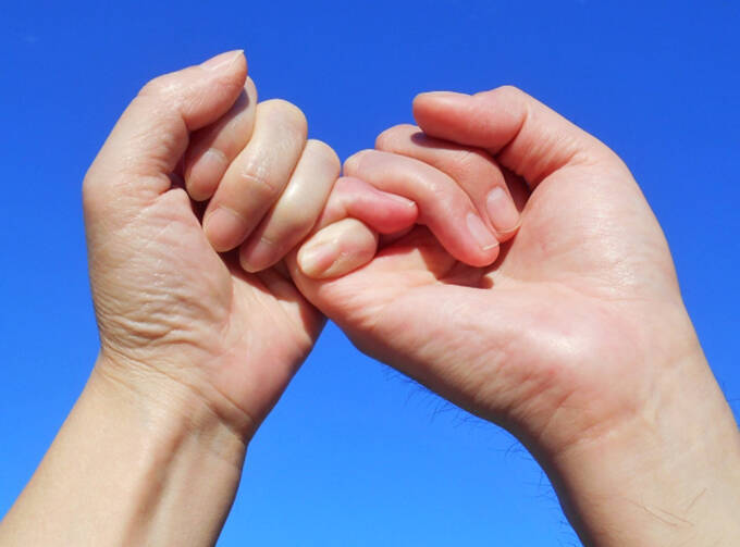 約束を必ず守るしるしとして、お互いの小指と小指を絡ませ、「指きりげんまん、嘘ついたら針千本飲ます……」と誓い合う風習があります。