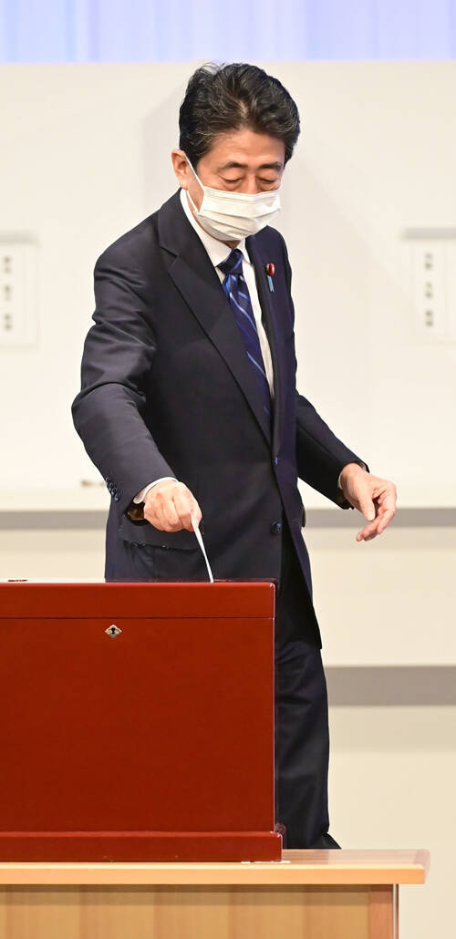 自民党総裁選2021投開票 投票する安倍晋三前首相 =2021年9月29日、東京・グランドプリンスホテル新高輪 (代表撮影) 写真提供:産経新聞社