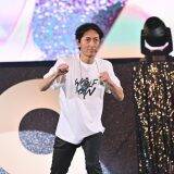 田原が熱唱していると、楽曲の途中で突如岡村がステージに現れ、ダンサーとして参加し、得意のダンスを披露。真っ赤な衣装をまとった田原と対照的な青い衣装に身を包み、揃って白熱のステージを繰り広げた。そしてステージが終わると2人でガッツリと熱い握手を交わし、会場を盛り上げた。